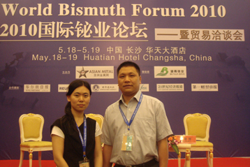 亞洲金屬小金屬部主管曹靜敏高級(jí)分析師和湖南鉍業(yè)有限責(zé)任公司李桂龍總經(jīng)理合影