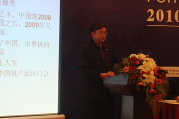 中國礦產有限責任公司總經理朱江先生分析了經濟危機之后中國合金原料市場的變化,河北鋼鐵集團承德分公司釩鈦產品研究中心主任陳東輝先生就中國釩鐵和五氧化二釩供需狀況進行了詳細分析。