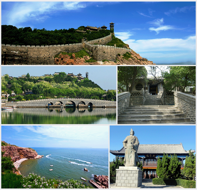 - 列島時隱時顯,東北海疆碧波連天,春夏之際,海市蜃樓時時光臨登州海上,使人耳目一新,心曠神怡。閣南有三清殿、呂祖殿、天后宮、龍王宮等道教宮觀建筑,均依丹崖山勢而筑,層層而上,高低錯落,與閣渾然一體,總建筑面積達18900余平方米;東南建觀瀾亭,為觀賞東海日出之所,西側海市亭,因為觀望海市蜃樓之境而名,又因其三面無窗,亭北臨海處筑有短垣遮護,亭外海風狂嘯,亭內卻燃燭不滅,故又名避風亭,亭內墻壁上嵌有袁可立《觀海市》詩石刻九方。整個建筑陡峭險峻,氣勢雄偉,朱碧輝映,風光壯麗。是山東著名的旅游勝地。
